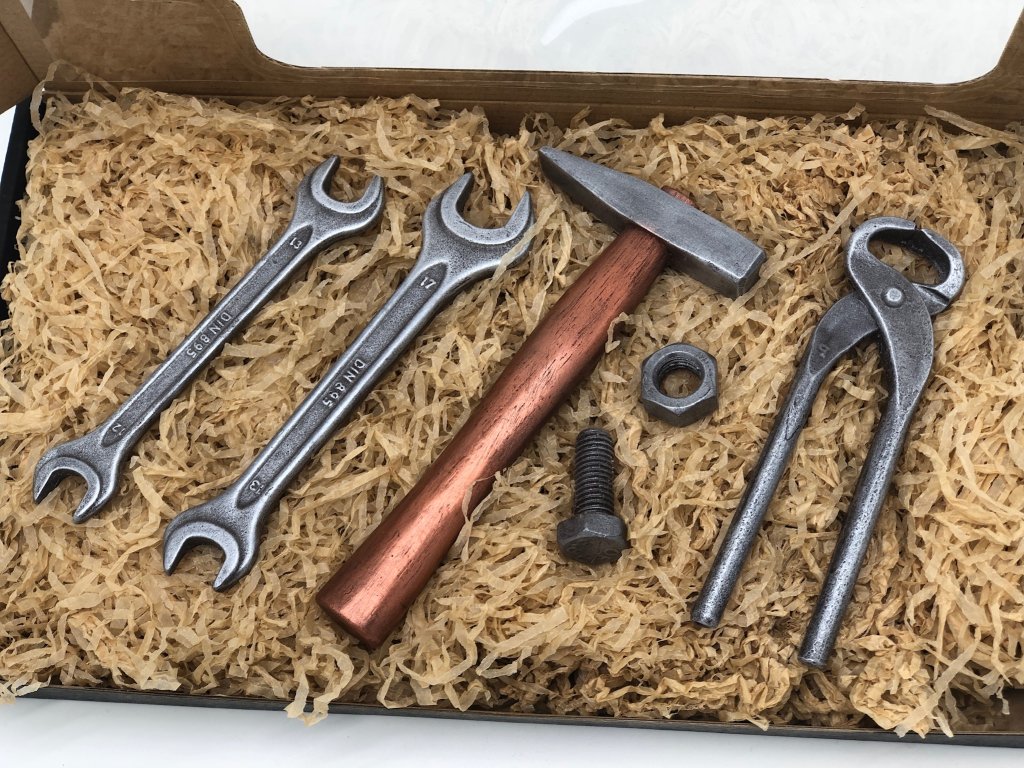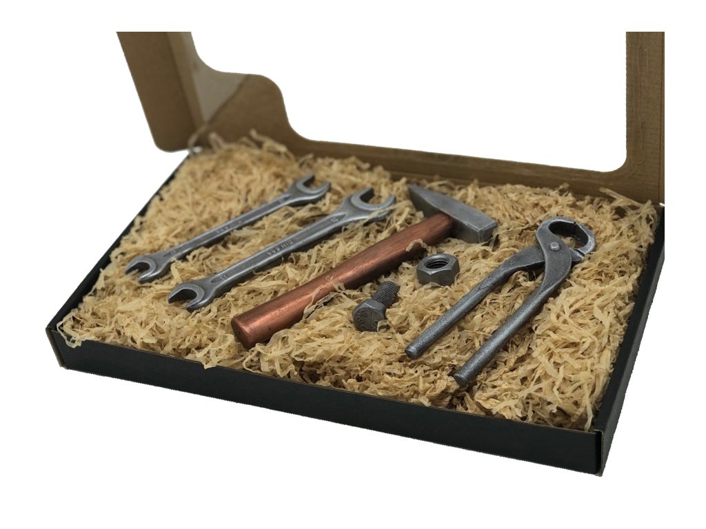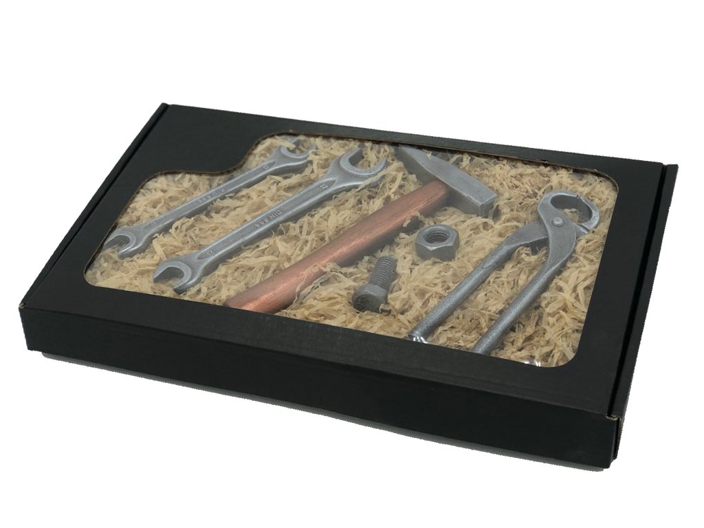 Original Werkzeugset mit Hammer Nr. 2 aus exzellenter Schokolade mit mindestens 58% Kakaoanteil.